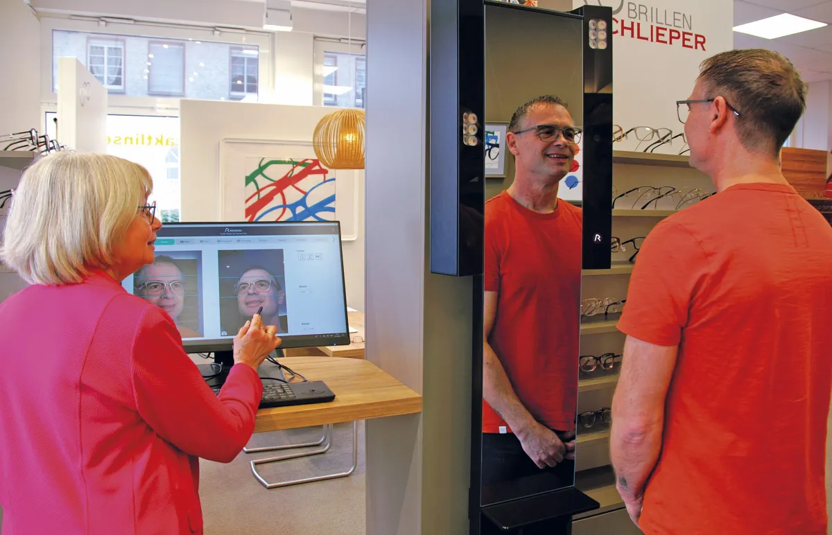 Komfortable Beratung: Sie sehen direkt am Bildschirm, wie Ihre neue Brille sitzt, und können zwischen verschiedenen Designs wählen.