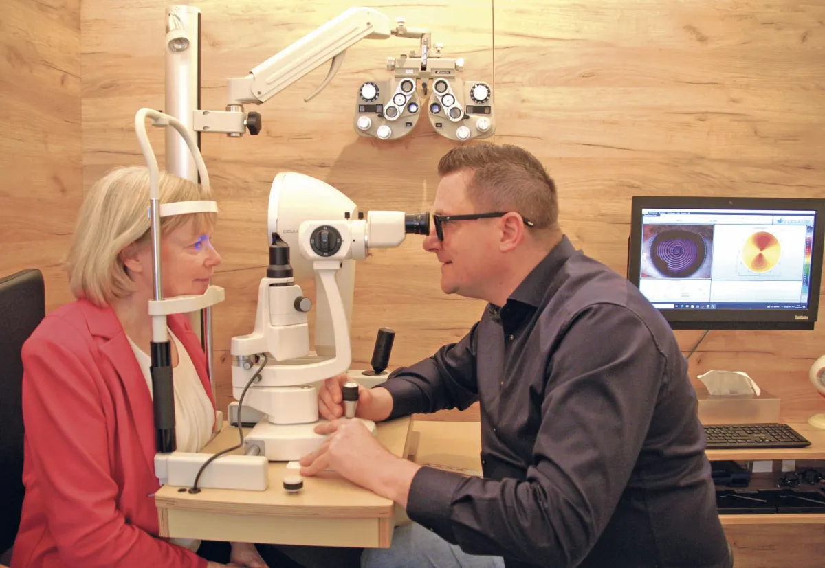 Um die passenden Kontaktlinsen für Sie zu finden, empfehlen wir, vorher eine präzise Vermessung Ihrer Augen mit unserem Keratographen durchzuführen.